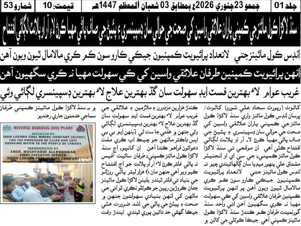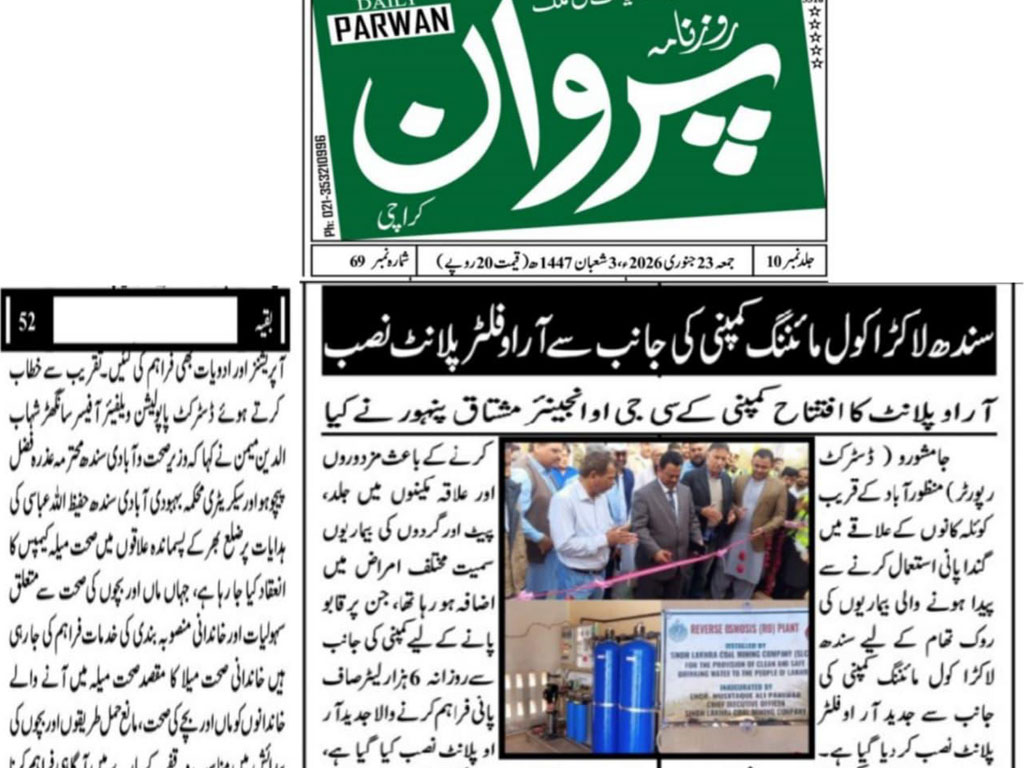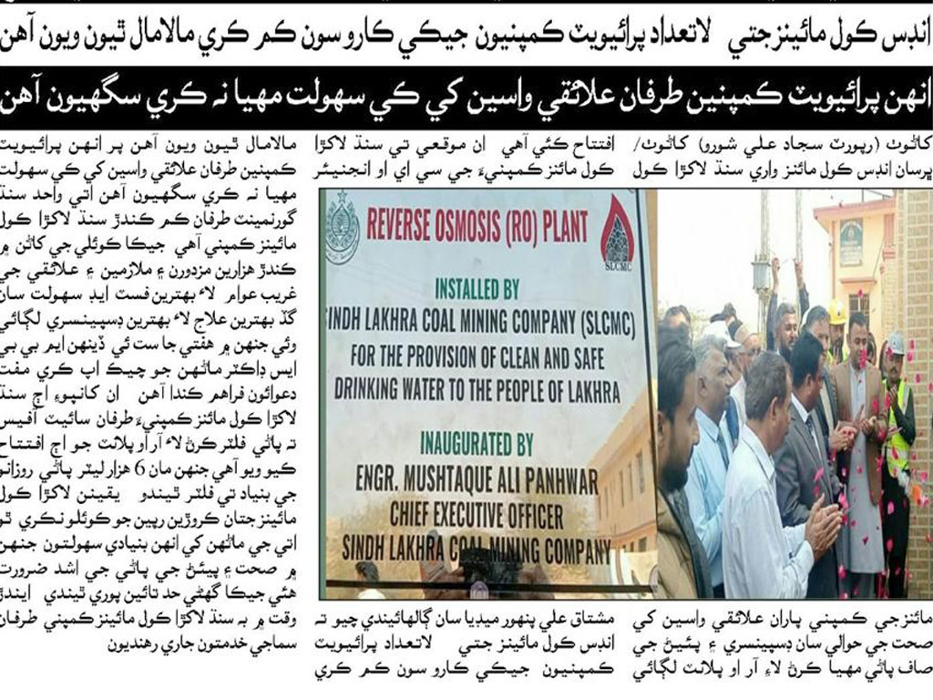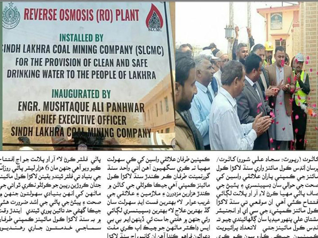 The CEO Sindh Lakhra Coal Mining Company inaugurated RO plant at Lakhra on 21 January 2026, it is providing a 6000 GPD RO water purification system to ensure safe, clean water for mining operations and local communities. This initiative protects health by reducing high mineral content in groundwater and supports equipment reliability, demonstrating our commitment to community welfare and environmental responsibility.